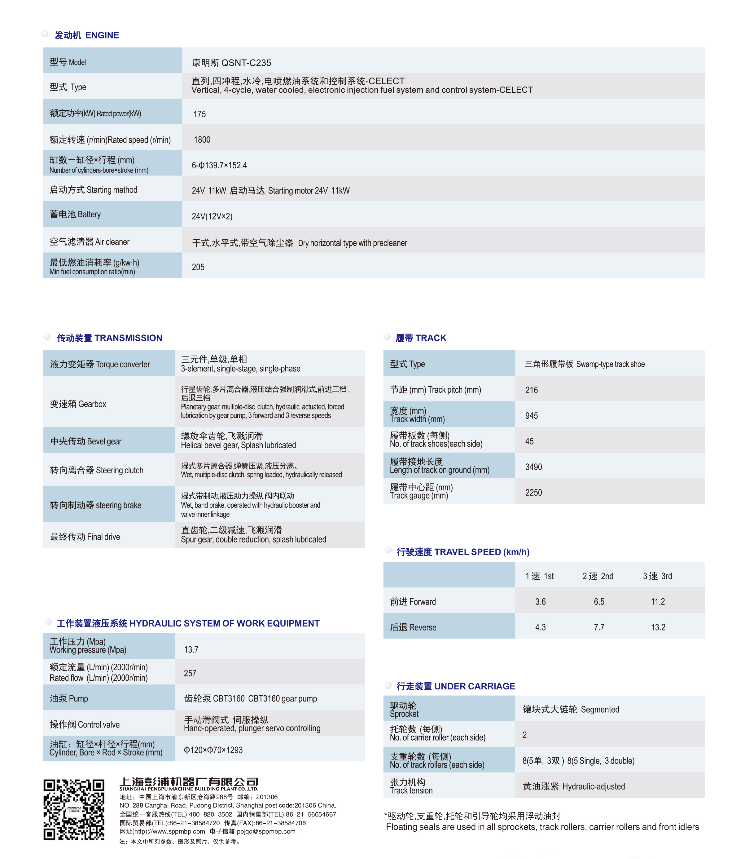 上海彭浦PD220YS-2履带式推土机
